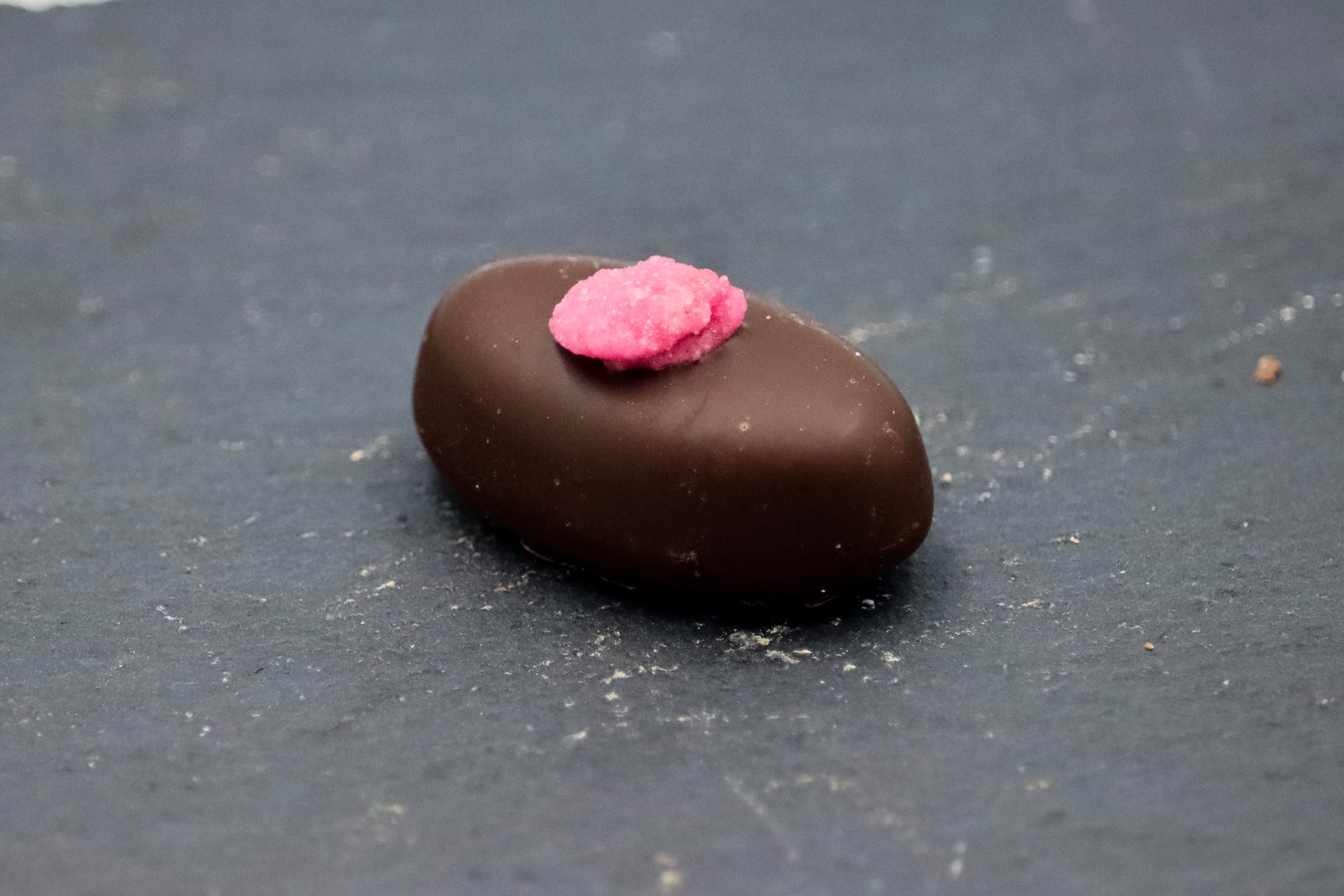 E133. Gall gynnwys olion NUTS. Mae siocled tywyll yn cynnwys: min 53.8% coco